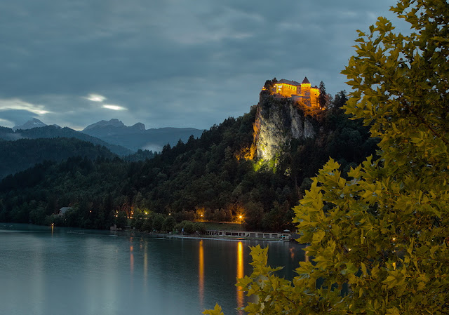 La espectacular iluminación de Bled Castle en Eslovenia.